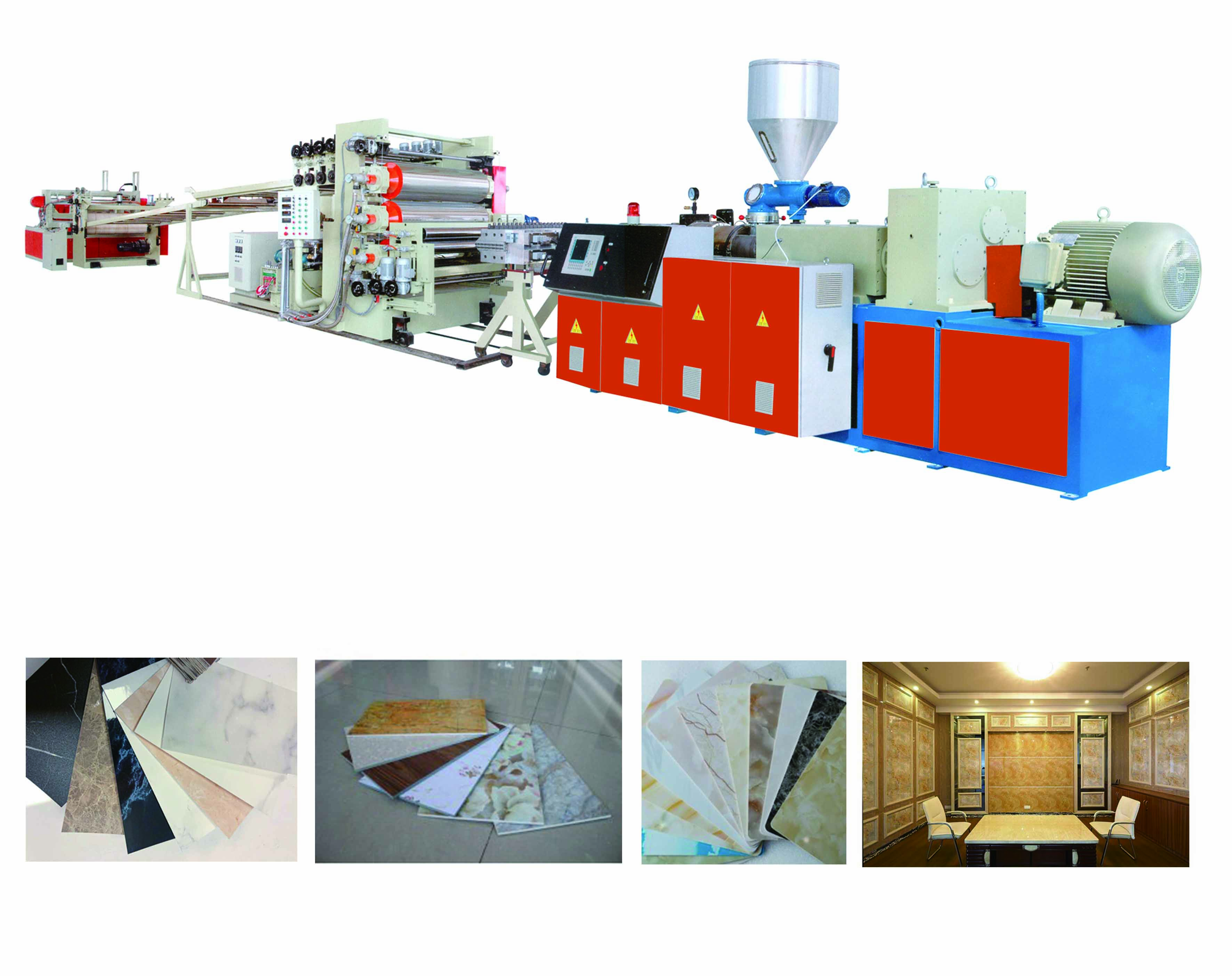 我公司引進國外先進的PVC仿大理石板設備生產線機器和技術工藝,開發生產制造各種仿大理石板設備?,F推出“石塑仿大理石板設備”系列。該生產線主要生產的產品有:UV高光裝飾板、石塑裝飾板、PVC仿大理石裝飾板及雕花裝飾板等。可滿足客戶需要做不同風格和層次的石塑仿大理石裝飾板。 PVC仿大理石板設備生產線機器生產的石塑仿大理石裝飾板用途廣泛,不僅可以設計出自然的美感,也可以設計出具有現代藝術感的 PVC仿大理石板設備生產線機器生產的石塑仿大理石UV高光板 炫彩UV板就是表面經過UV處理保護的板材。UV漆即紫外光固化漆,也稱光引發涂料。密度板,硅鈣板等板材通過上UV漆,再經過UV光固化機干燥而形成的裝飾板,有亮光表面處理,色澤鮮艷,具有很強的視覺沖擊力,耐磨,抗化學性強,使用壽長,不變色,易清理,對機械設備和工藝技術要求高,是比較理想的板材養護處理工藝。