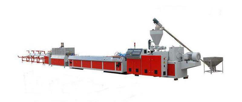 該機組是生產PVC塑料異型材的生產設施,主要生產門窗系列異型材、板材、片材、微發泡異型材、微發泡裝飾板材。我公司引進吸收國外技術而研制的大型塑料門窗異型材生產線,配套以錐形雙螺桿擠出機,具有自動化程度高,工作性能平穩,產量大,效率高等優點。